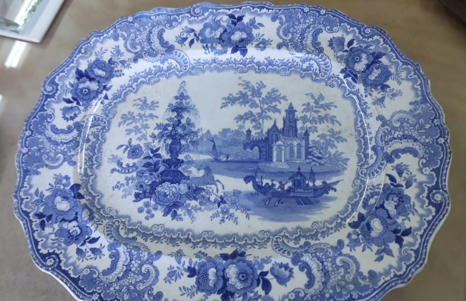 Travessa Home Acervo Museológico Travessa 005714 Baixar Número de registro5714DescriçãoTravessa com borda recortada, nas cores azul e branca. Motivos florais na borda e paisagem ao centro, com um chafariz à esquerda, igreja e embarcação com pessoas em rio à direita.DenominaçãoTravessaAutorMintonTécnicaargila | cerâmicaMaterialfaiançaLocal de produçãoGrã-BretanhaClasse05 Interiores > 05.6 Utensílio de Cozinha/MesaTermos de indexaçãoBRASIL REGÊNCIA | DIOGO ANTÔNIO FEIJÓ | FLORES | PADRE FEIJÓ | PAISAGEMAltura (cm)32,00Largura (cm)39,80Referências bibliográficasBARROSO, Gustavo Dodt. Catálogo geral - 1a seção: archeologia e história. Rio de Janeiro: Museu Histórico Nacional, 1924. | WINZ, A, Pimentel. A presença de Diogo Antônio Feijó no Museu Histórico Nacional. Anais do MHN, v. XXI, 1969. Explore mais itens Bule05.6 Utensílio de Cozinha/Mesa Crucifixo02.3 Escultura Lápis10.5 Material de Propaganda Xícara05.6 Utensílio de Cozinha/Mesa